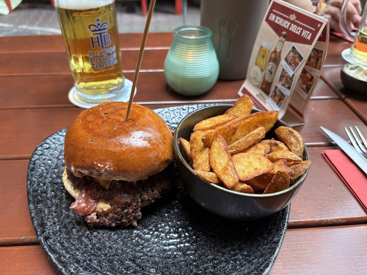 When you step into Tony's Burger & (A)More, you’re immediately greeted with a tempting menu that goes beyond the standard burger offerings. The star of the show is, of course, their mouthwatering burgers, but you can also indulge in other delightful treats that make this place stand out. For breakfast or dessert, try their fluffy pancakes - a sweet and satisfying choice that pairs perfectly with a cup of coffee. If you're in the mood for something a little more indulgent, the Lauwarmer Schokokuchen (warm chocolate cake) is a heavenly option, featuring a rich, melt-in-your-mouth center that chocolate lovers will adore. And, for those who enjoy a refreshing drink with their meal, the Aperol Spritz is a popular choice, offering a perfect balance of bitterness and citrusy sweetness.