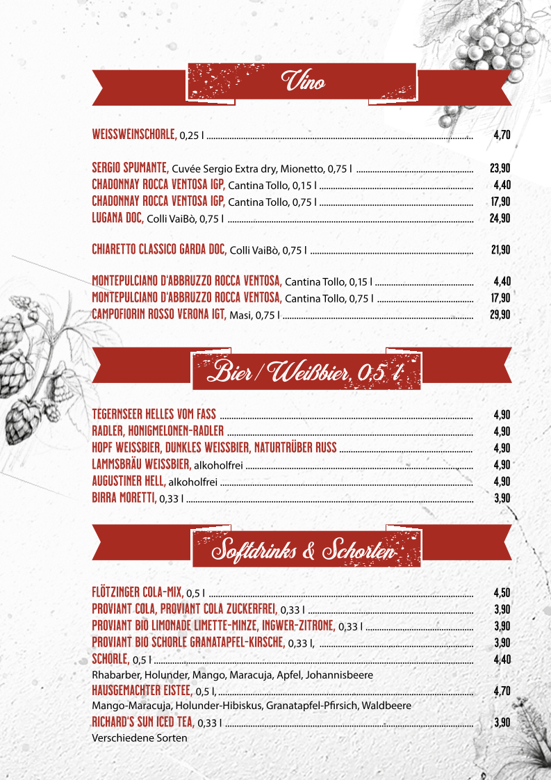 150 g Rindfleisch, Büffelmozzarella, Basilikum, Parmaschinken, hausgemachtes Pesto-Rosso, Rucola, Tomate, karamellisierte Zwiebeln